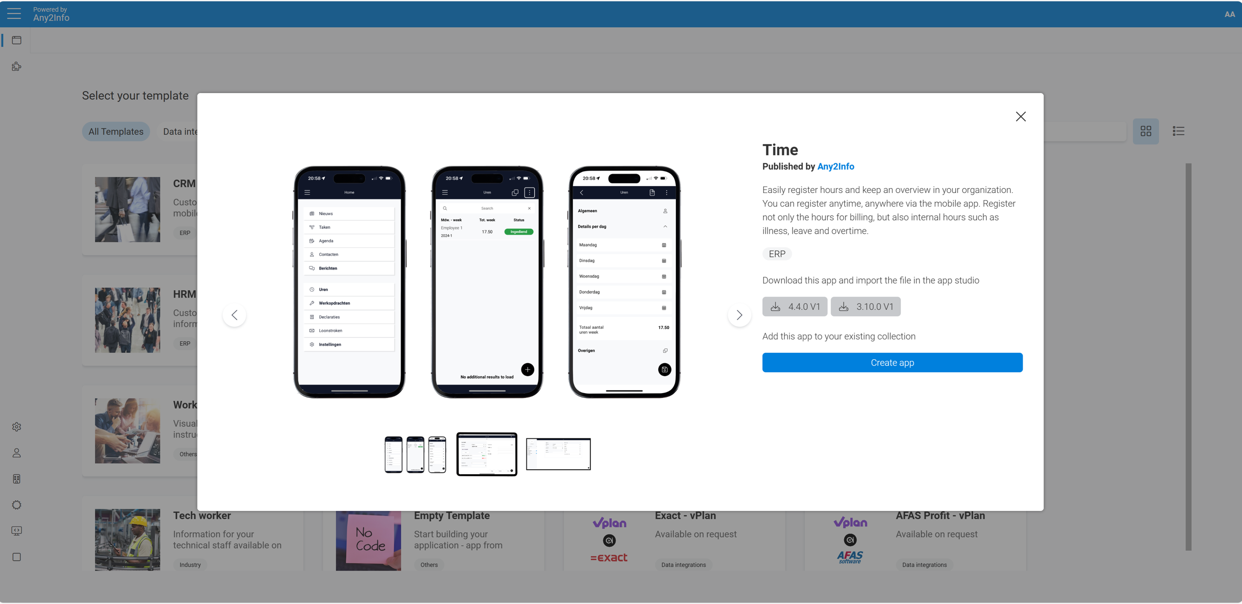 If you have created a new app collection (menu part App Basics) you can provide this app with suitable app templates. Therefore you can: